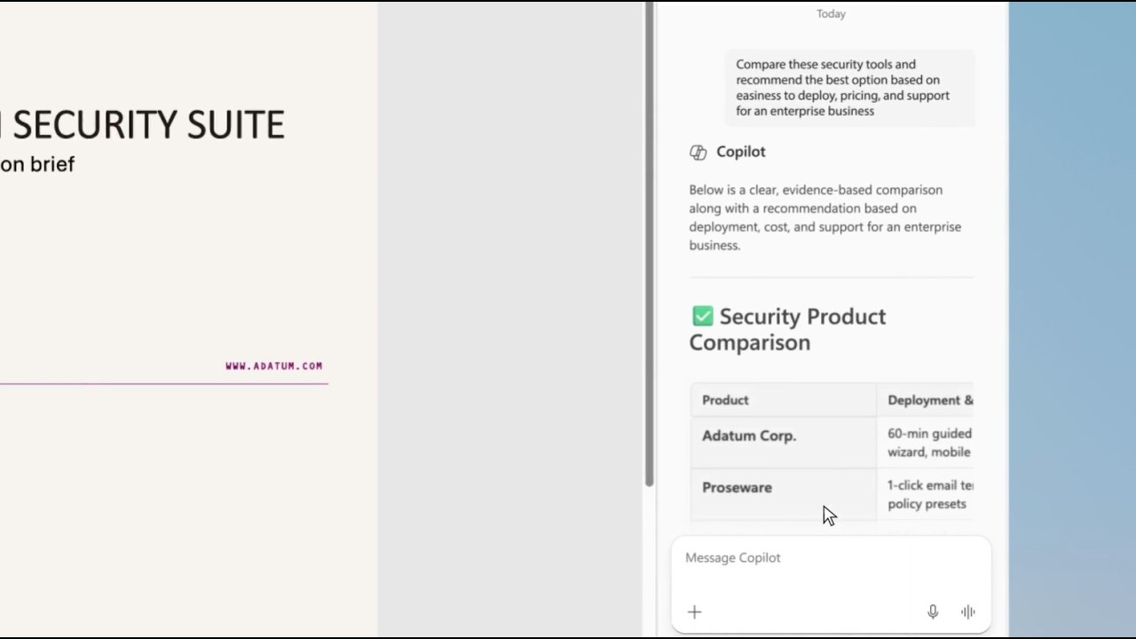 Com essa evolução, o Copilot in Edge for Business foi projetado para assumir trabalhos mais complexos e ricos em contexto, ao mesmo tempo em que continua a operar dentro dos limites empresariais definidos pela TI. Essas experiências ajudam as pessoas a se moverem mais rapidamente e a manterem o foco, ao mesmo tempo que protegem dados confidenciais.
